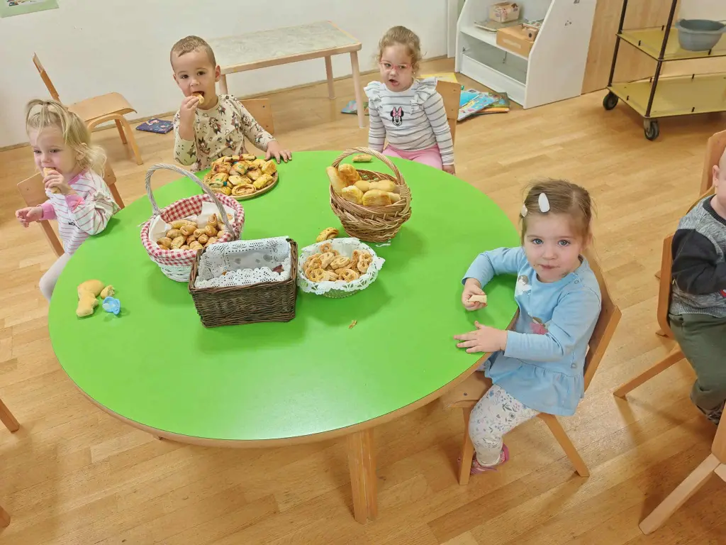 Veliko hvala i roditeljima koji su zajedno s djecom kod kuće pripremali razne pekarske proizvode: kiflice, muffine, kolače, pogačice i maštovite oblike od tijesta.