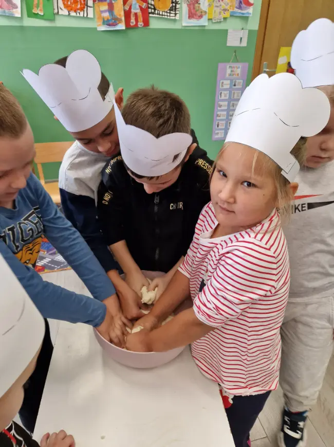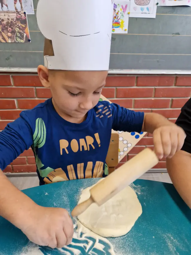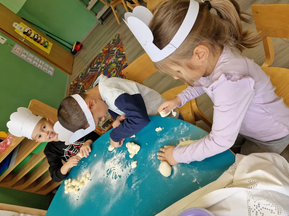 Kroz razgovor, prigodne priče, poticaje i aktivnosti saznali smo koliko truda i ljubavi treba da bi od malog zrna nastao kruh. Promatrali smo slike žita, brašna i pekara na poslu, a zatim se i sami okušali u toj ulozi! Naši mali pekarivrijedno su mijesili tijesto, valjali ga, oblikovali srca, pletenice i male kruščiće – i pri tome se dobro zabavili.
