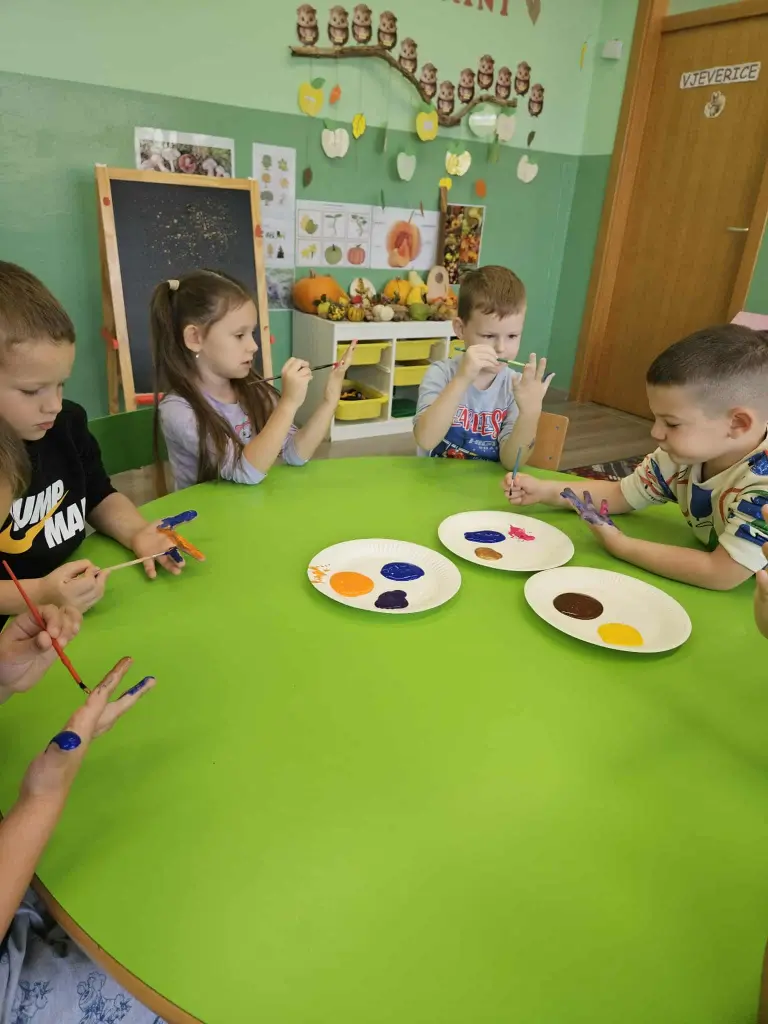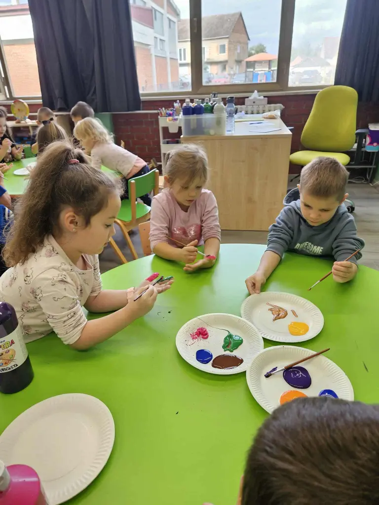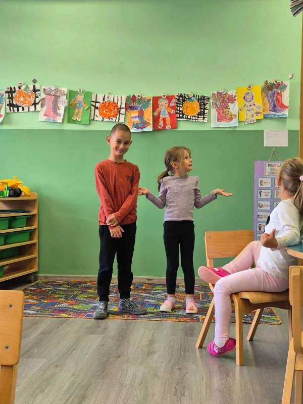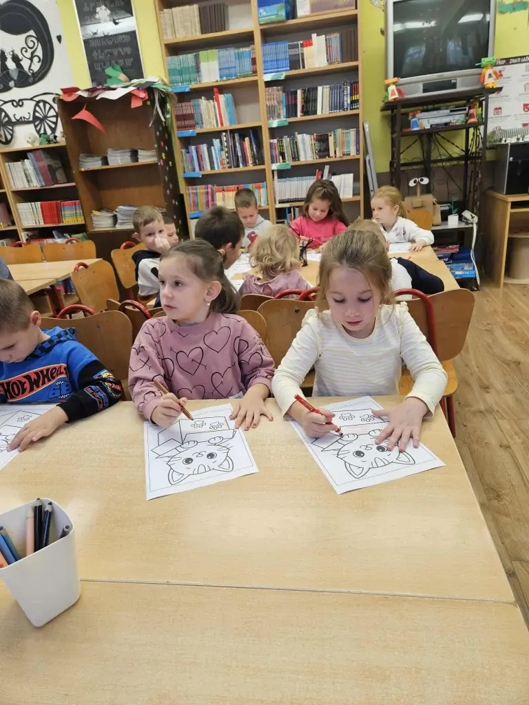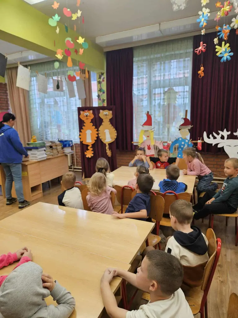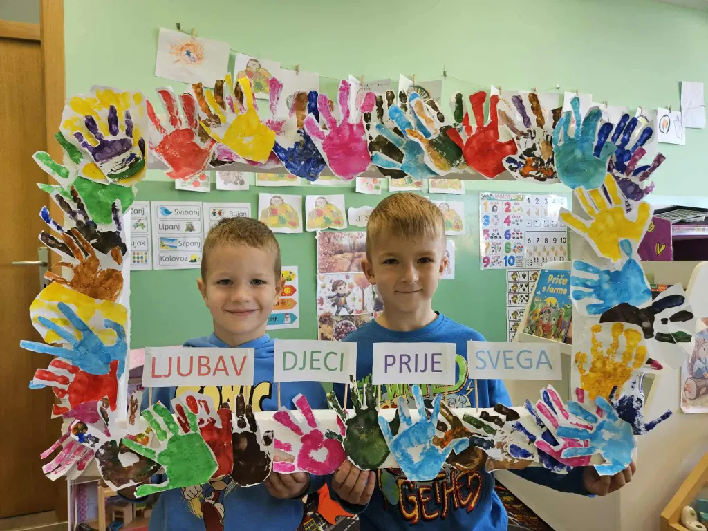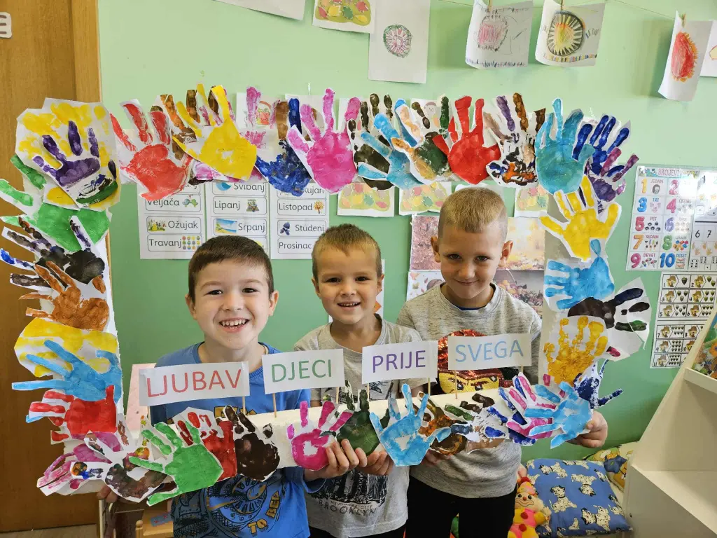 Tijekom Dječjeg tjedna u našoj skupini razgovarali smo o empatiji, prijateljstvu i osjećajima. Djeca su kroz razgovor učila prepoznavati i imenovati vlastite emocije te razumjeti kako se osjećaju njihovi prijatelji. Posjetili smo školsku knjižnicu gdje smo čitali priče o pomaganju i dobroti. Naučili smo pjevati pjesmicu “Kad si tužan ja ću doći”, igrali razne igre koje potiču suradnju i zajedništvo. Također smo izrađivali šareni okvir za fotografiranje, kojima smo obilježili Dječji tjedan i naglasili moto “Ljubav djeci prije svega!”