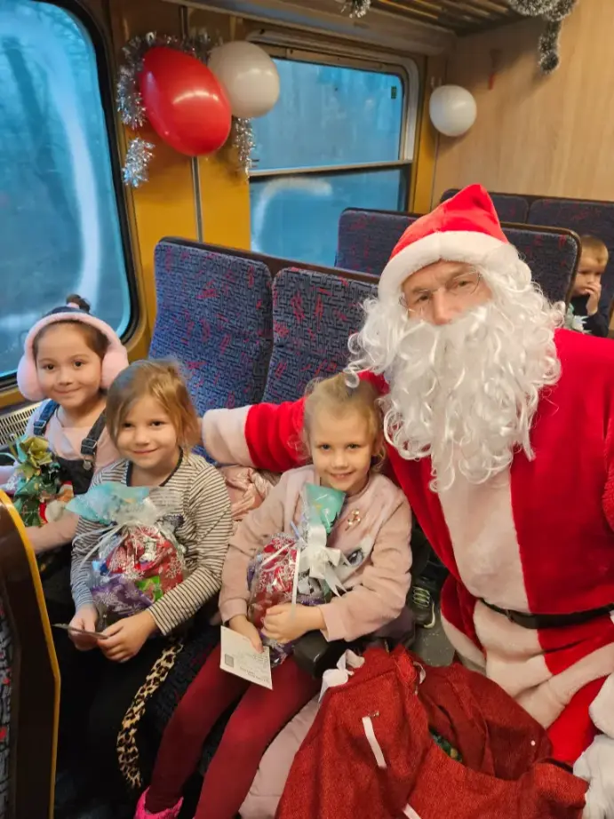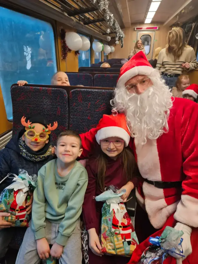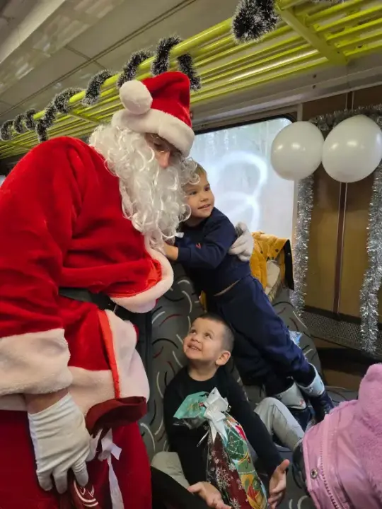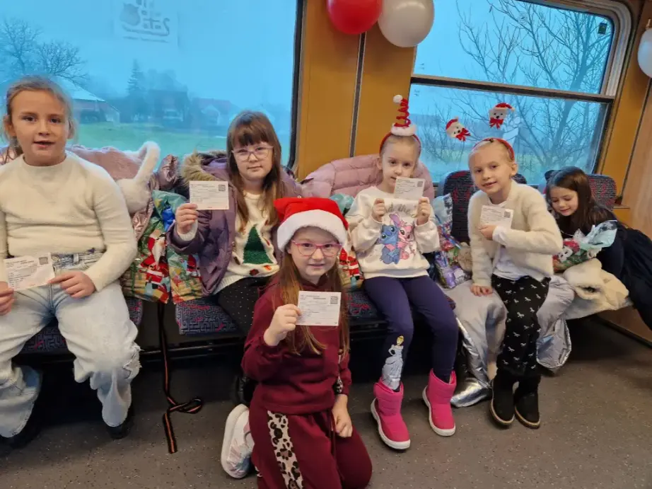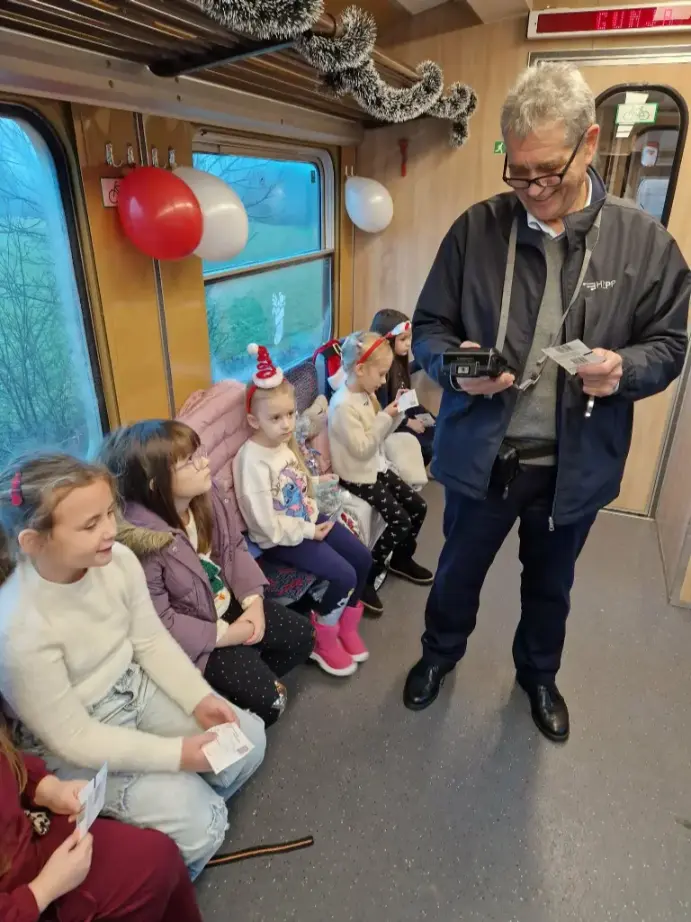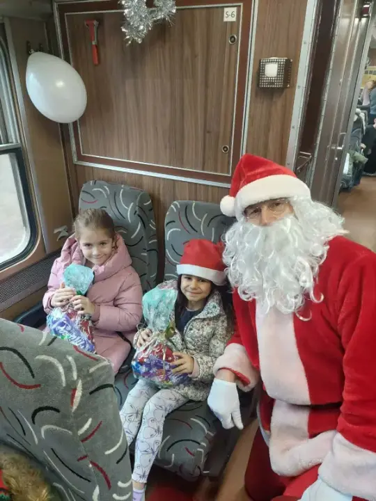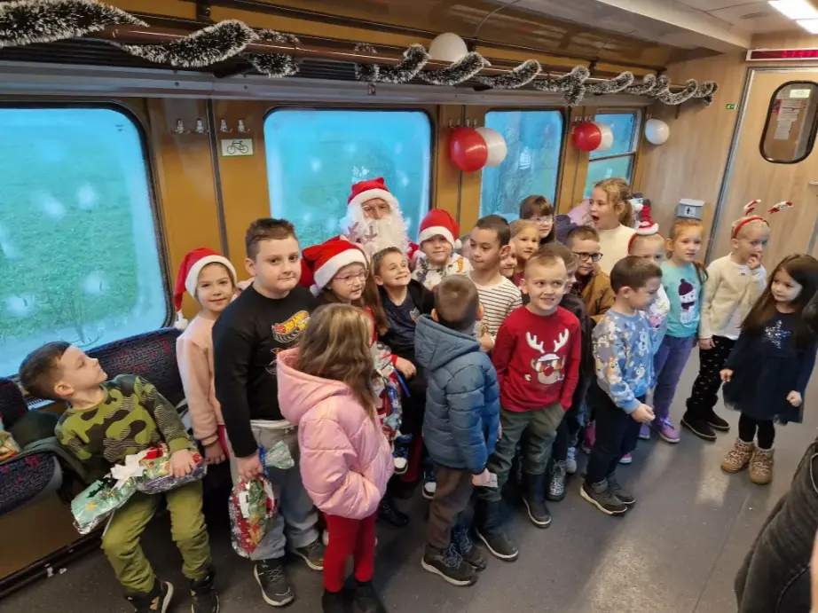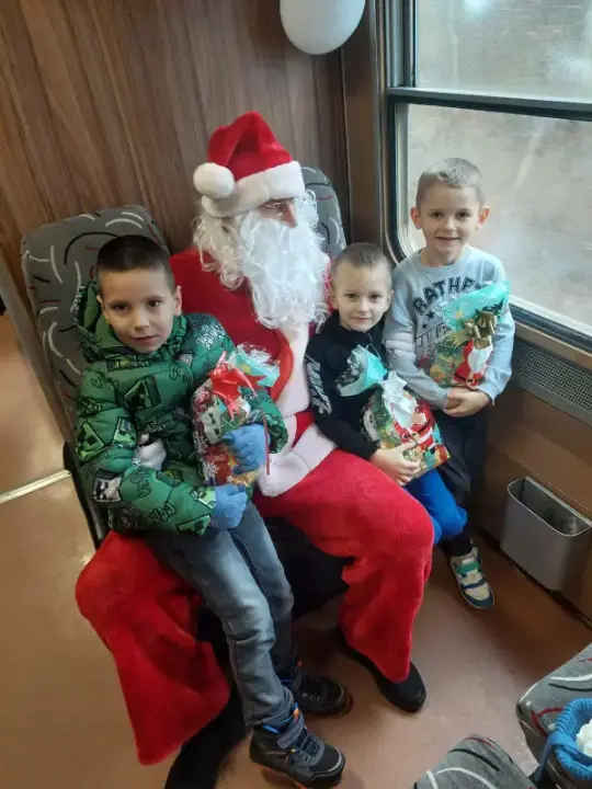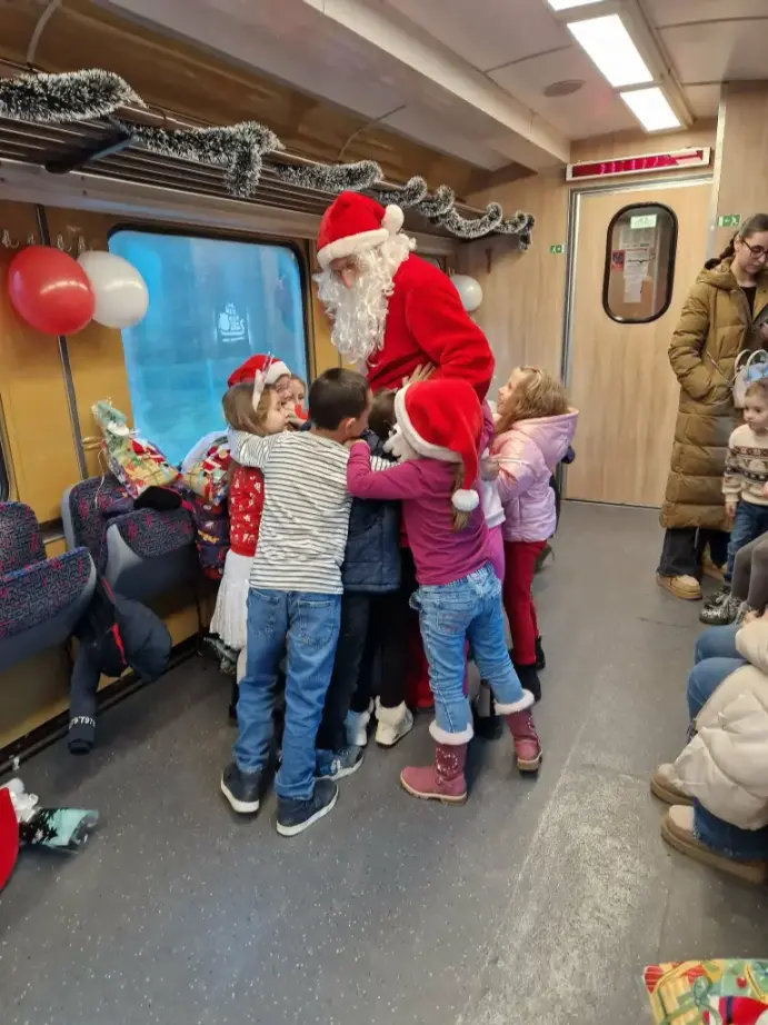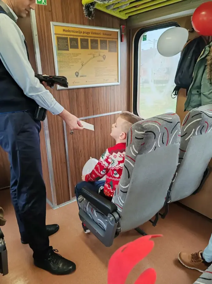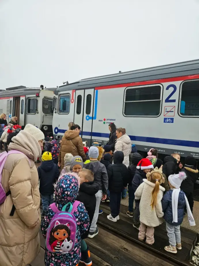 U vlaku je djecu dočekao Djed Božićnjak koji je svima uručio prigodne paketiće. Ovo je prilika da djeca iskuse vožnju vlakom i upoznaju naš krajolik. Za vrijeme putovanja bilo je veselo uz božićne pjesme koje su djeca, odgojiteljice i Djed Božićnjak zajedno zapjevali.