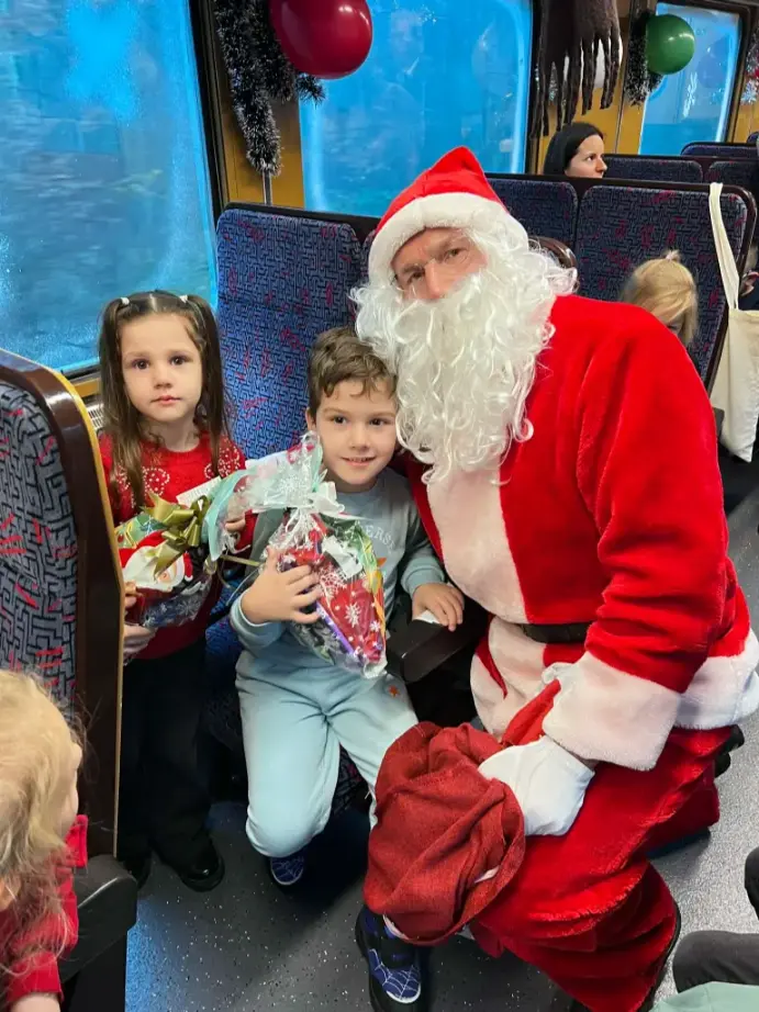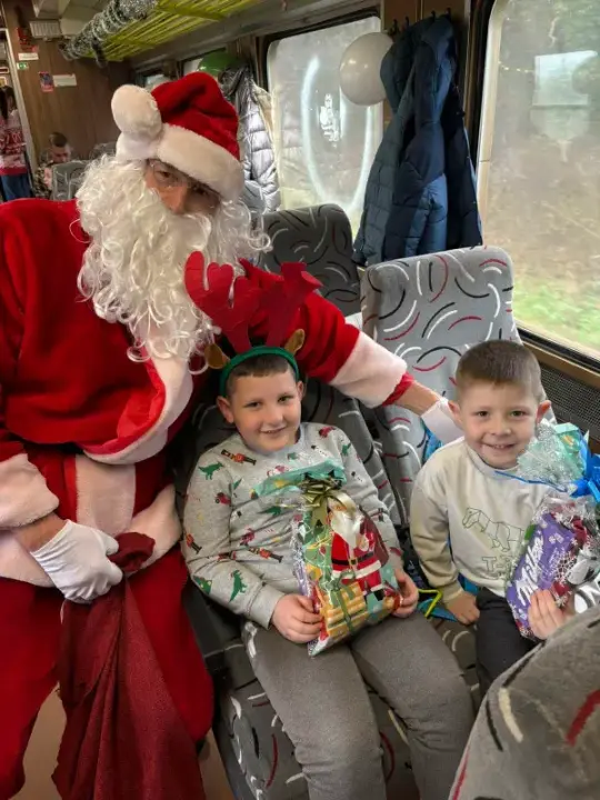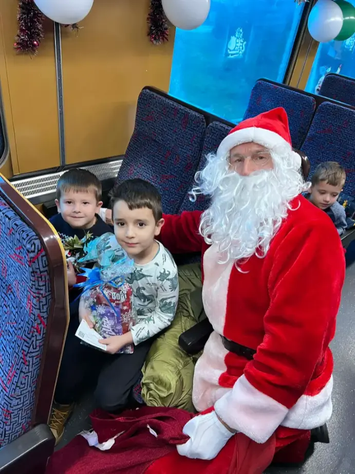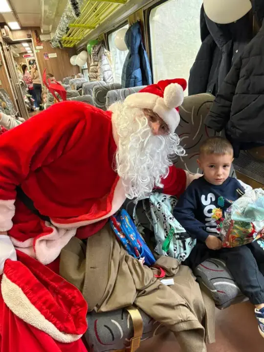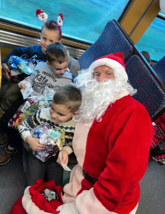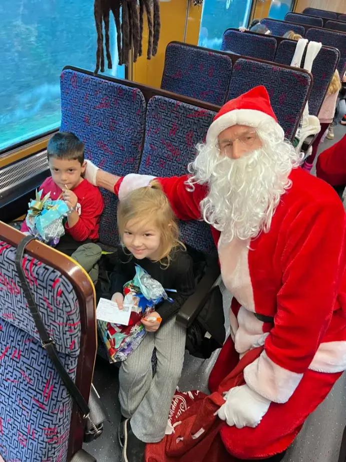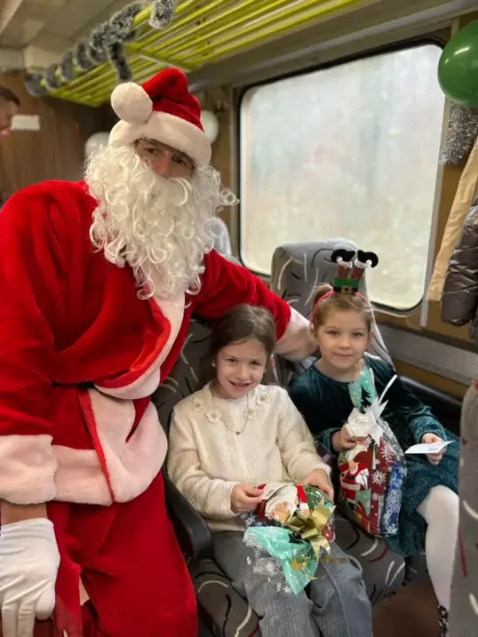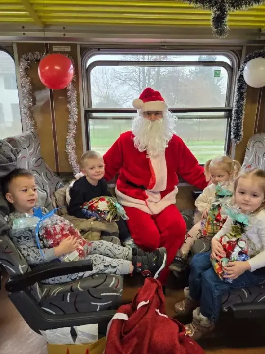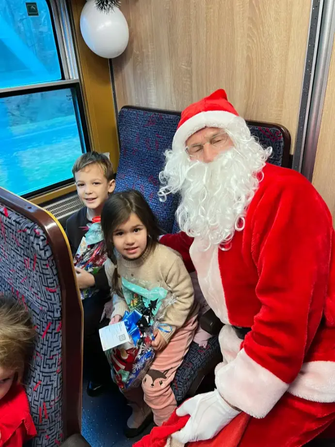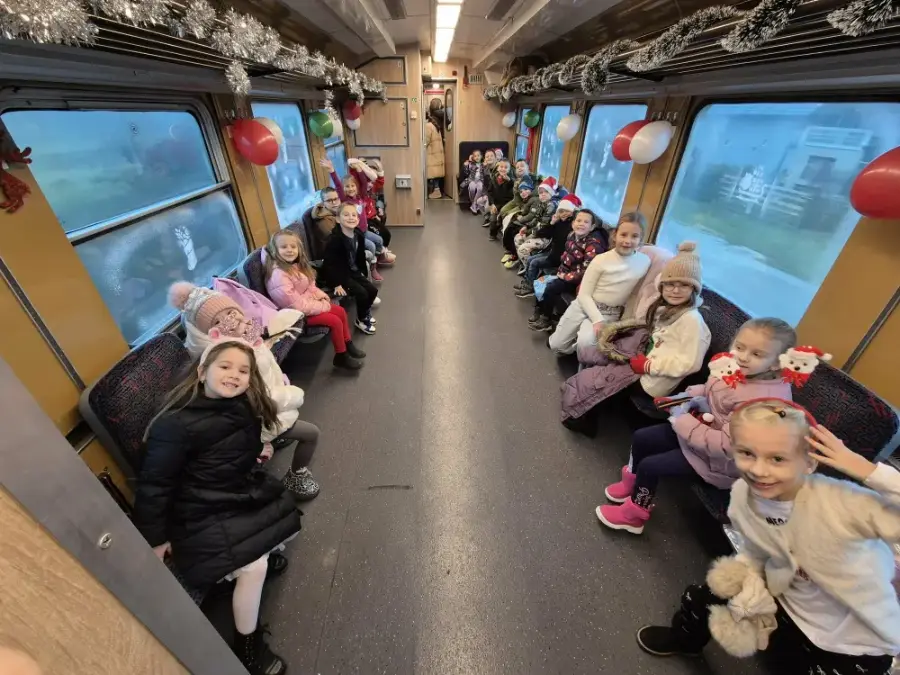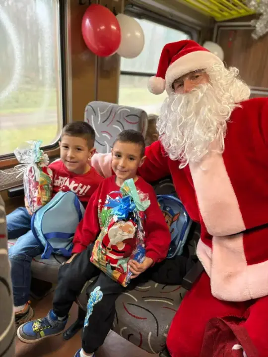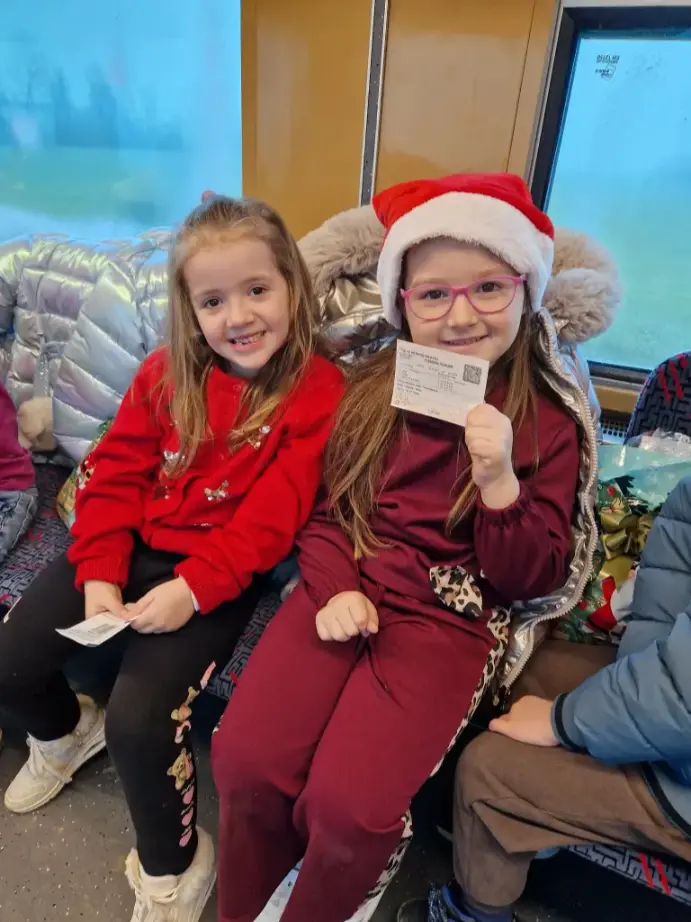 U vlaku je djecu dočekao Djed Božićnjak koji je svima uručio prigodne paketiće. Ovo je prilika da djeca iskuse vožnju vlakom i upoznaju naš krajolik. Za vrijeme putovanja bilo je veselo uz božićne pjesme koje su djeca, odgojiteljice i Djed Božićnjak zajedno zapjevali.