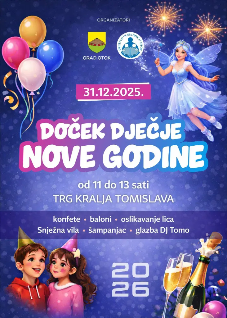 Vrtićke skupine Dječjeg vrtića Pupoljak Otok sudjelovale su na dječjem dočeku Nove godine koji je organiziralo Društvo Naša djeca Otok i Grad Otok na Trgu kralja Tomislava u Otoku. Djeca su se zabavila uz veselu glazbu, balone, Snježnu vilu, dječji šampanjac, konfete, oslikavanje lica i mnoge druge zanimljive aktivnosti. Neka nam Nova godina bude sretna kao što je bio i njen doček!