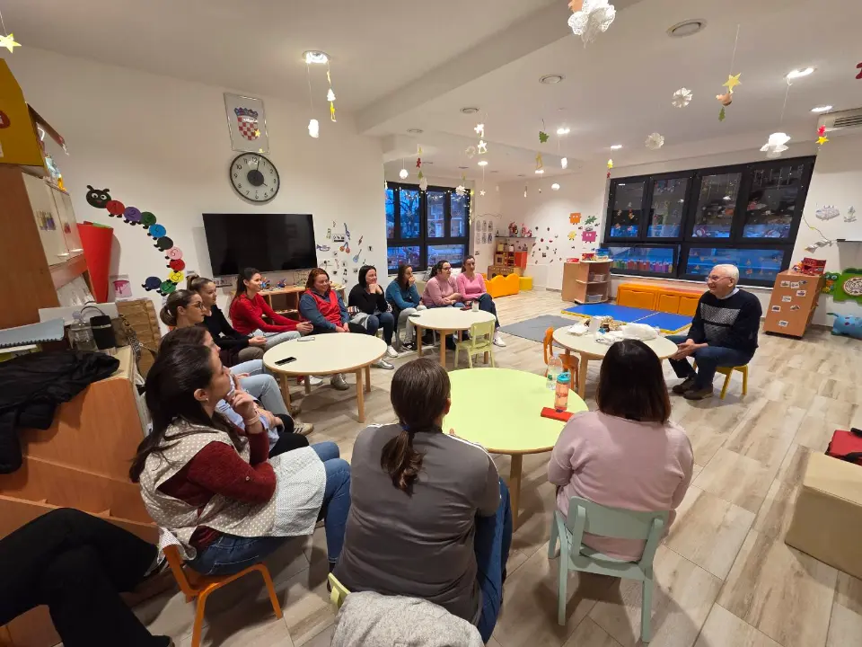 U ponedjeljak, 1.12.,u našem vrtiću održana je edukacija iz prve pomoći u suradnji sa Crvenim križem. Kroz stručno vodstvo i praktične vježbe upoznali smo se s najvažnijim postupcima pružanja prve pomoći usituacijama koje se mogu dogoditi u svakodnevnom radu s djecom. Imali smo priliku uvježbati osnovne tehnike, upoznati se s pravilnim pristupom ozlijeđenoj osobi te obnoviti važne smjernice za brzo iučinkovito reagiranje. Ovakve edukacije iznimno su važne kako bismo osigurali još veću sigurnost djece i unaprijedili kvalitetu našeg rada.