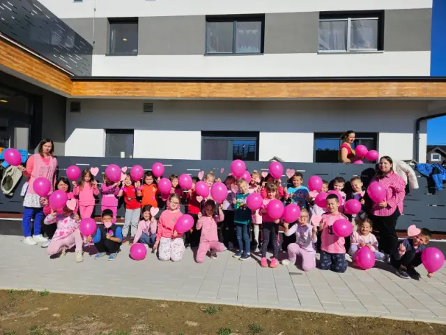 Djeca i odgojiteljice su se tom prilikom odjenuli u ružičaste majice, kao simbol podrške borbi protiv raka dojke.