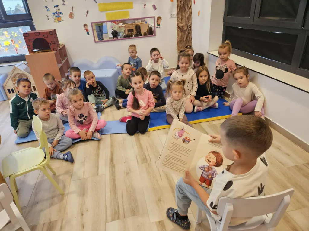 Tjedan smo započeli čitanjem priče i razgovorom o najdražoj knjizi. Dogovorili smo se da će djeca, ukoliko imaju svoju omiljenu knjigu, donijeti ju u vrtić i pročitati nam.