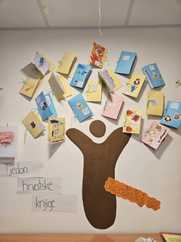 Proveli smo i akciju „Popravi, ne bacaj“, u kojoj smo zajedno popravljali potrgane knjige i slikovnice. Za njih smo izradili i policu u obliku žirafe, te smo sve slikovnice uredno posložili na svoje mjesto.