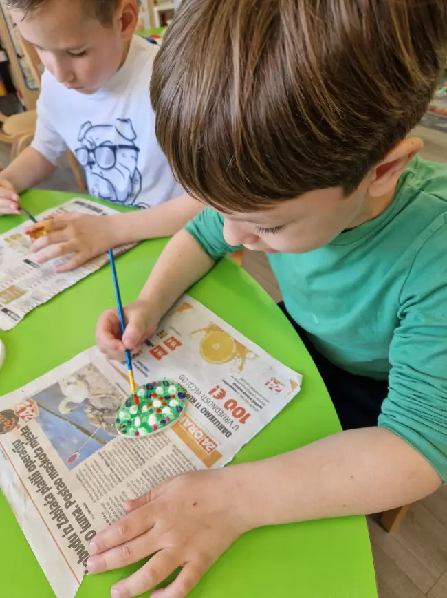 Ususret Uskrsu provodili smo aktivnosti kojima su se djeca pripremala za nadolazeći nam blagdan. Puno smo razgovarali o Uskrsu, uskrsnim običajima, pričali priče vezane za Uskrs, ukrašavali pisanice različitim tehnikama, izrađivali košarice, koke i piliće, gledali film o Isusovom uskrsnuću. U SDB organizirali smo i potragu za slatkim čokoladnim jajima, u kojoj su svi bili veoma uspješni. Vjevericama je posebno bio zanimljiv pokus u kojemu smo nakon 48h umjesto tvrdog jajeta dobili prozirno, gumeno, svjetleće jaje.