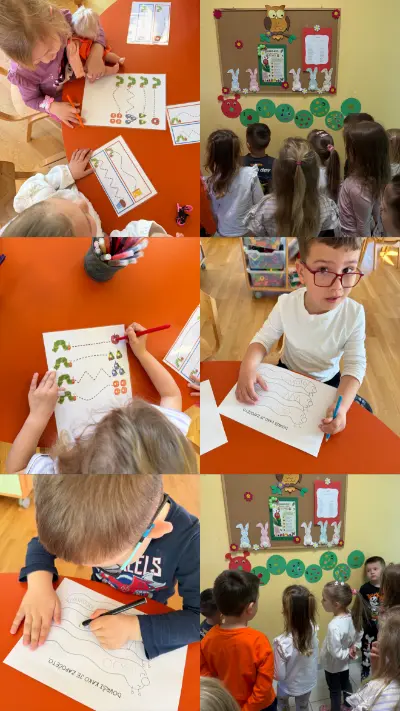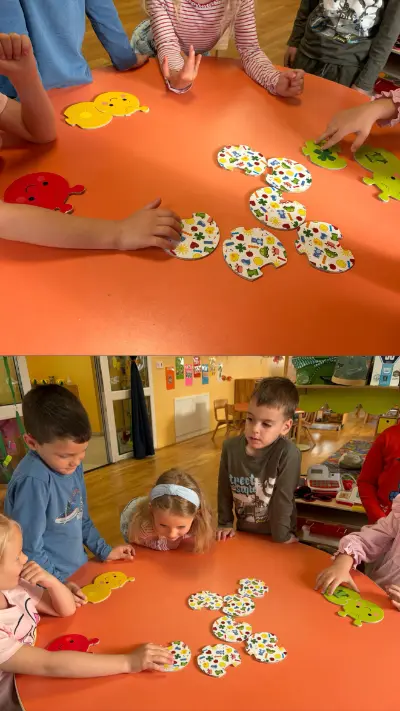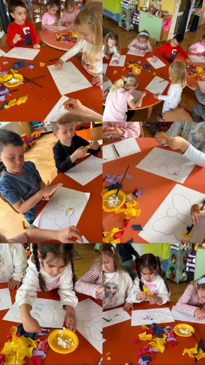 Kroz razne zabavne i poučne aktivnosti djeca su istraživala priču o maloj gusjenici, upoznavala voće i različite namirnice kroz igru, mirise, okuse i brojanje te razvijala kreativnost izrađujući vlastite gusjenice. Također smo kroz igru i svakodnevne aktivnosti učili dane u tjednu. Nastavili smo upoznavati životni ciklus leptira na jednostavan i zanimljiv način, a kroz pjesmu, pokret i igru poticali smo razvoj jezika, pažnje i suradnje. Izrađivali smo i šarene leptire koristeći različite likovne tehnike, čime su djeca razvijala finu motoriku, maštu i osjećaj za boje.